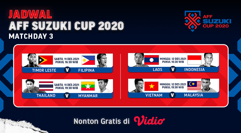 Klik link ini untuk menyaksikan seluruh laga pada matchday 3 AFF Suzuki Cup 2020 melalui Vidio.