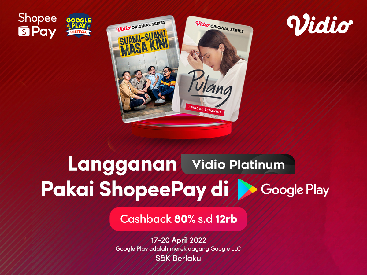 Promo ShopeePay – Halo Sobat Vidio! Bulan baru, semangat baru, harapan baru, dan pastinya Promo Terbaru dari Vidio. Vidio nggak pernah bosen kasih promo spesial untuk kamu. Di promo ini kamu dapat Cashback 80% xdengan membeli paket Premier Platinum menggunakan ShopeePay di Google Play!