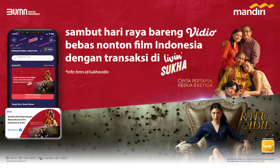 Seluruh Nasabah yang memiliki Aplikasi Livin’ by Mandiri dan melakukan transaksi minimal 1x di Fitur Sukha akan mendapatkan program tanpa biaya langganan untuk Nonton Paket Platinum Vidio melalui Fitur Sukha pada Aplikasi Livin’ by Mandiri.