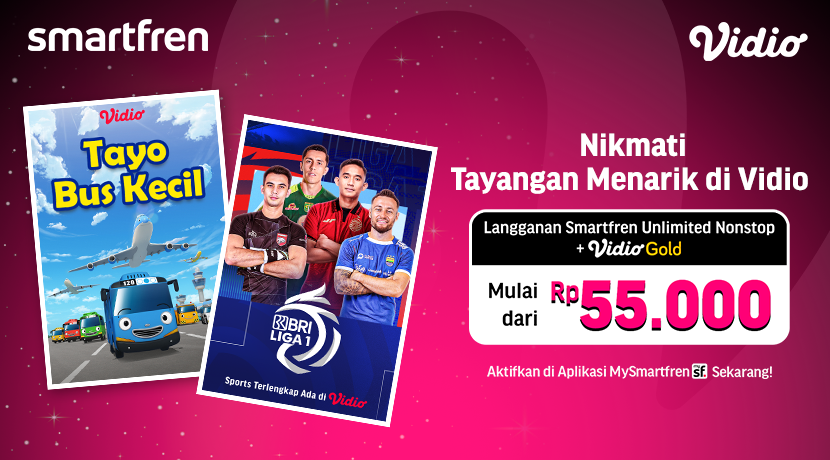 Dengan kerjasama ini, pelanggan Smartfren bisa menikmati konten-konten di Vidio seperti Vidio Original Series hingga pertandingan olahraga favorit dengan mudah. Pada paket Vidio Gold, kamu tidak hanya mendapatkan akses nonton Vidio, tetapi juga akan mendapat bonus kuota Smartfren loh!