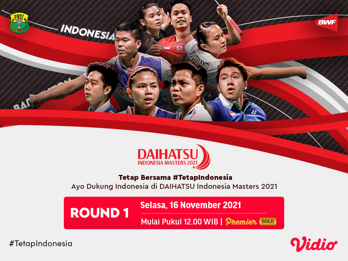 Live streaming Indonesia Masters 2021 kini mulai memasuki babak pertama yang akan segera berlangsung mulai hari ini, Selasa (16/11/2021) siang WIB. Sejumlah wakil Indonesia akan tampil dan berjuang di hari perdana BWF Tour Super 750 ini.