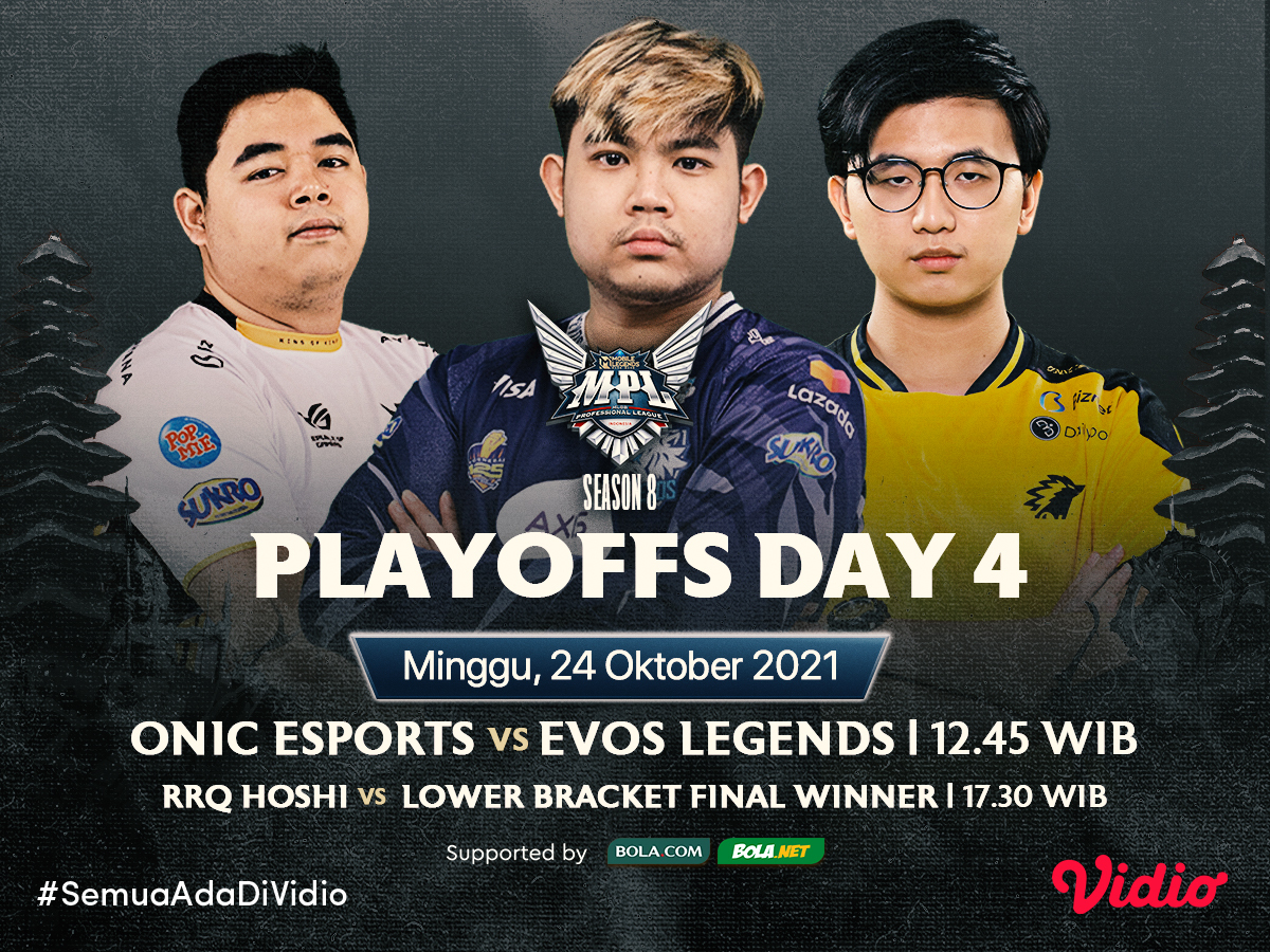 Live streaming MPL ID S8 babak playoffs kini memasuki hari yang ditunggu-tunggu yakni babak Grand Final yang akan berlangsung hari ini, 24 Oktober 2021 siang WIB. Keseruan dua pertandingan terakhir match 7 dan match grand final dapat disaksikan melalui Vidio.