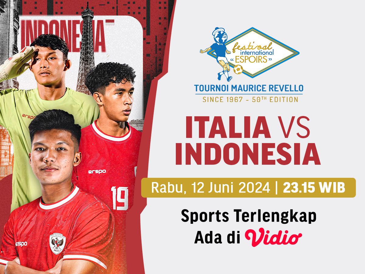Maurice Revello 2024 menghadirkan pertandingan seru antara Italia U-21 vs Indonesia U-20 pada Rabu (12/6/2024), pukul 23.15 WIB. Pertandingan akan berlangsung di Stade Marcel Roustan, Prancis dan dapat disaksikan melalui streaming di Vidio.