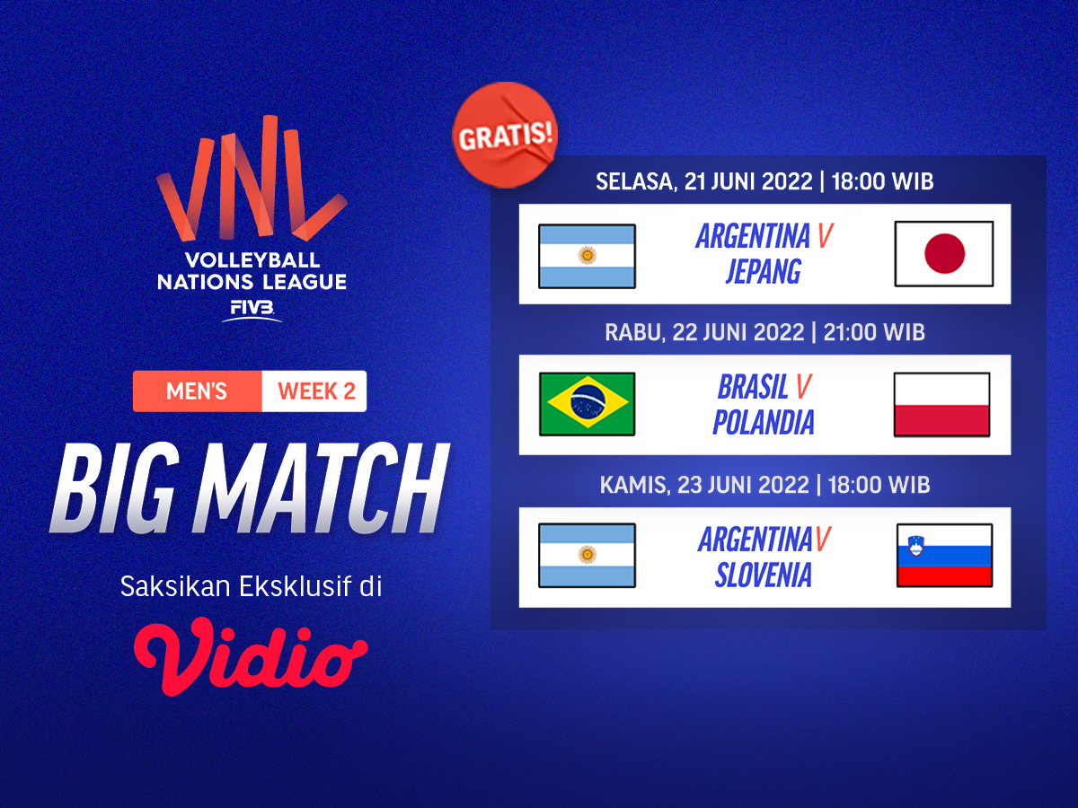 Jangan sampai ketinggalan untuk menyaksikan big match VNL 2022 putra pekan kedua melalui link live streaming berikut ini.