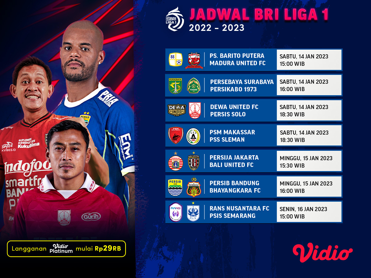 Itu dia jadwal dan link streaming laga tunda BRI Liga 1 2022/2023 pekan ke-18. Nonton live streaming BRI Liga 1 hanya melalui layanan OTT Vidio yang tersedia di smartphone atau smart tv mu, bisa juga dengan mengunjungi website vidio.com.