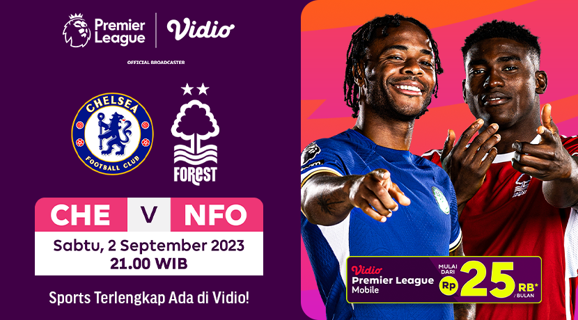 Langsung saja download aplikasi Vidio di handphone kamu dan dapatkan promo yang sangat menarik nonton Liga Inggris cuma Rp 25 ribu aja per bulan. Dalam paket ini, kamu bisa mengakses live streaming Chelsea vs Nottingham Forest dan semua pertandingan Premier League lainnya di Vidio!