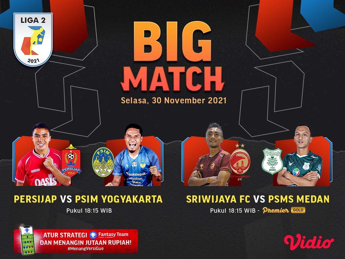 Live streaming Liga 2 2021 pekan ke-10 menampilkan beberapa pertandingan seru, salah satunya duel panas antara Persijap Jepara vs PSIM Yogyakarta yang akan berlangsung pada hari ini, Selasa (30/11/2021) malam WIB di Stadion Manahan Solo.