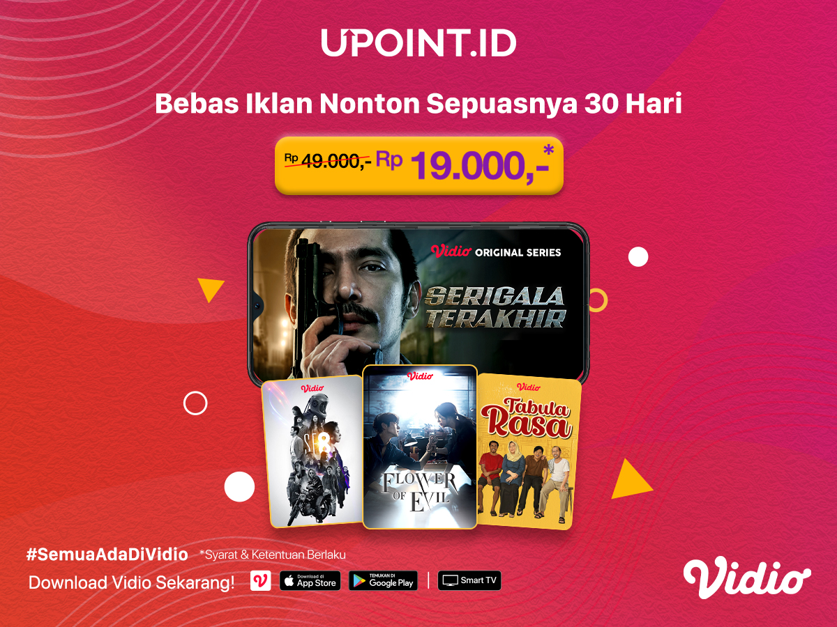 Yuk buruan pilih metode pembayaran Upoint.id dan kamu bisa mendapatkan harga sebesar Rp 19.000,- yang tadinya berlangganan platinum sebesar Rp 49.000. Jadi tunggu apalagi? Nikmati promo langganan Vidio sekarang, jangan sampai terlewatkan ya!