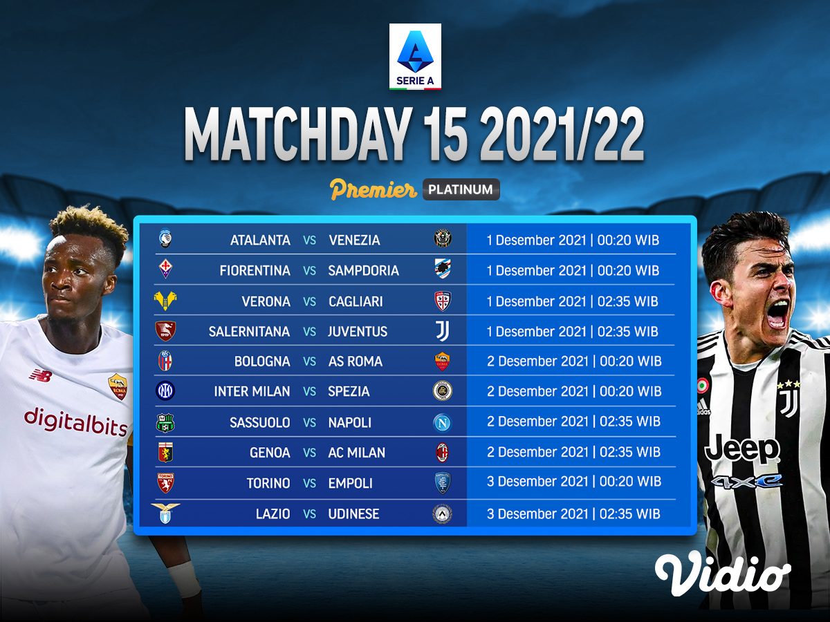Jadwal Serie A 2021 Giornata 15